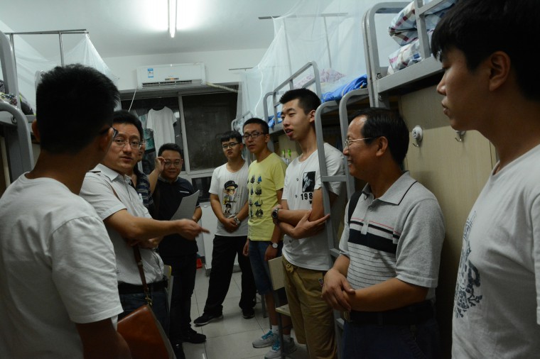 2016年8月27日19时,学院领导为了了解新生入住情况,关心同学,进行了新生宿舍的走访。